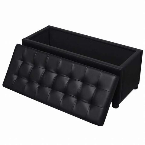vidaXL 収納オットマン 人工皮革 ブラック家具 ベンチ 倉庫・通路用ベンチ