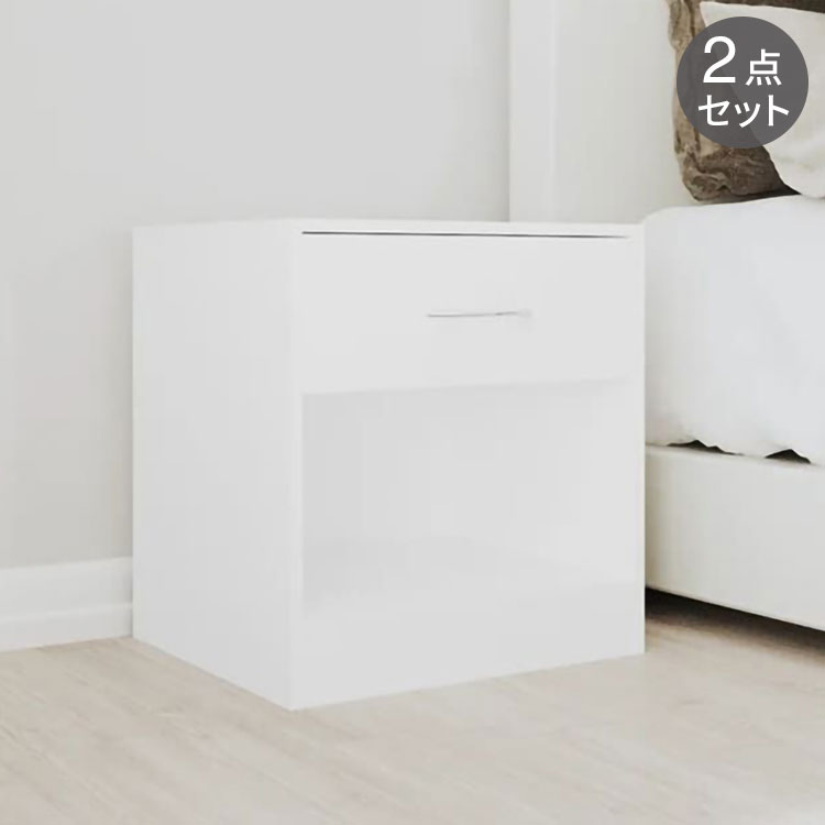 vidaXL ナイトテーブル 2点 引き出し付き ホワイト家具テーブルベッドサイドテーブル