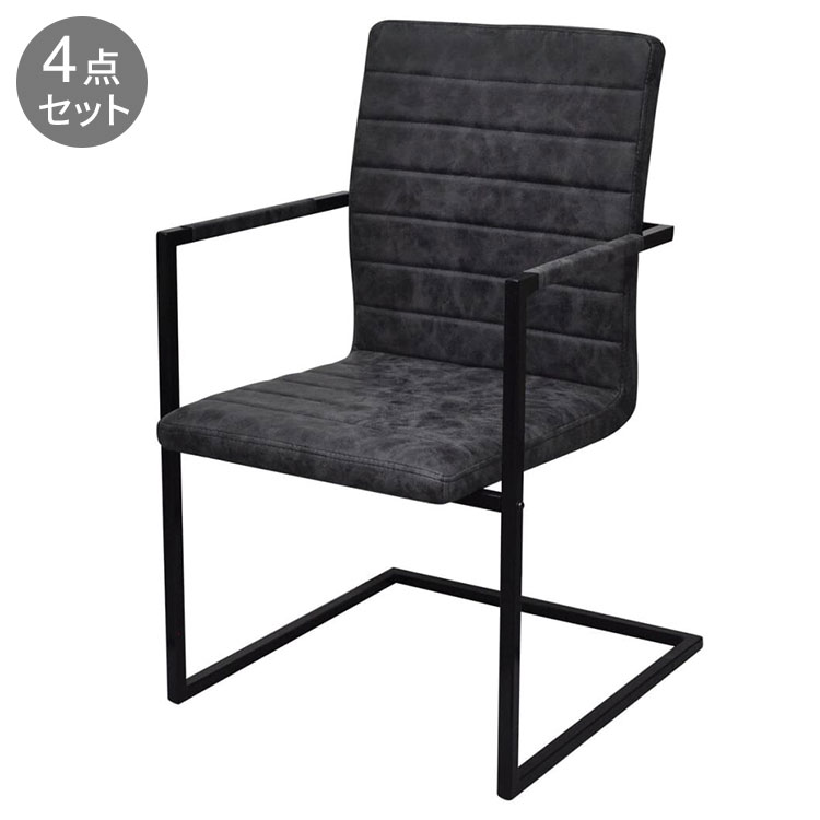 vidaXL カンチレバーダイニングチェア 4点 ブラック 合成皮革製 家具 チェア キッチン ダイニングルームチェア