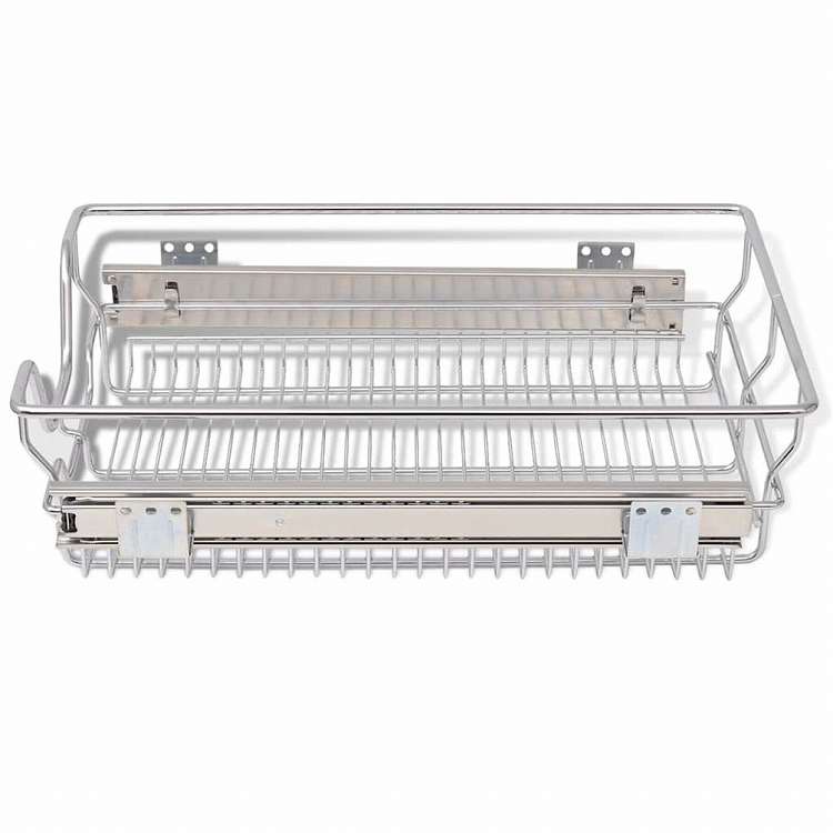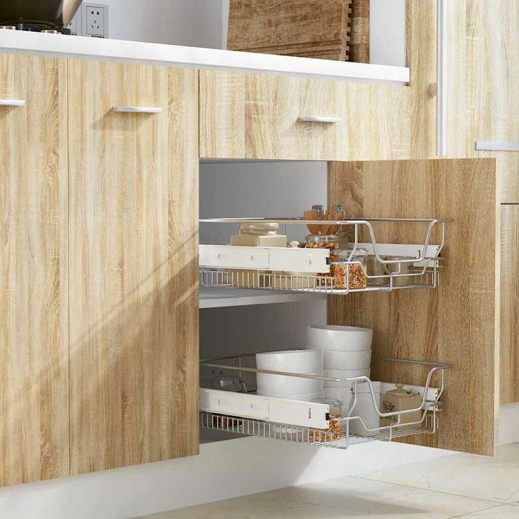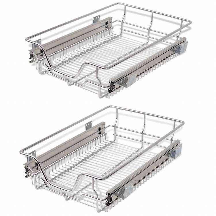 vidaXL 引き出し式 ワイヤーバスケット 2点 シルバー 400 mmホーム&ガーデン キッチン&ダイニング キッチンツール&調理器具 キッチン収納 調理道具ホルダー・ラック