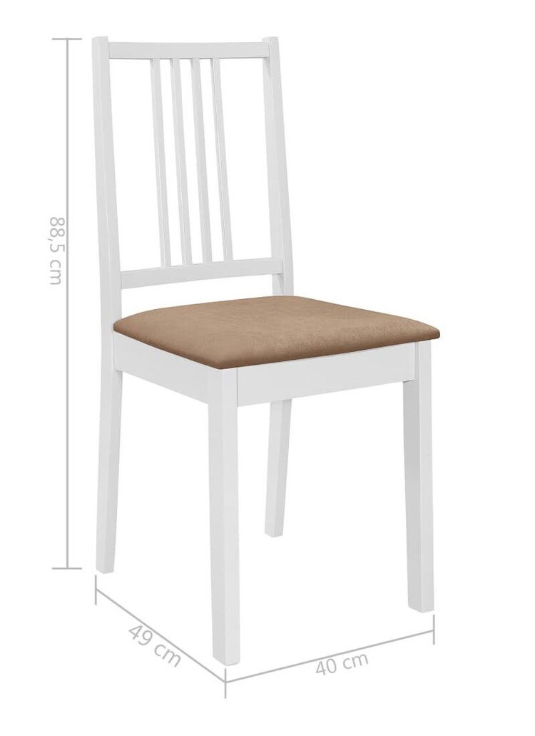 vidaXL ダイニングチェア クッション付き 2点 ホワイト 無垢材 家具 チェア キッチン ダイニングルームチェア