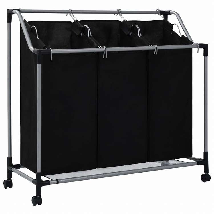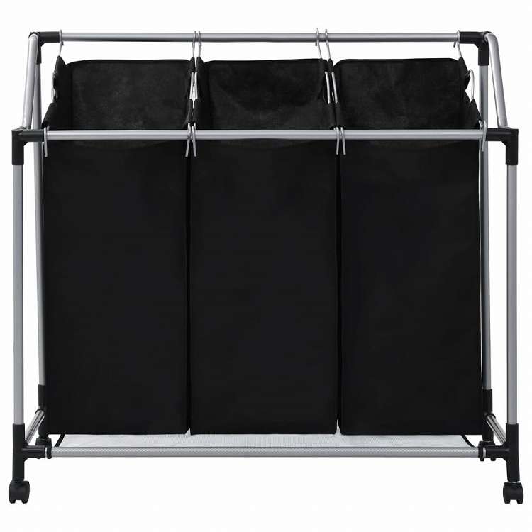 vidaXL ランドリーソーター 3バッグ付き ブラック スチール製ホーム&ガーデン 家事用品 ランドリー用品 洗濯かごのレビュー