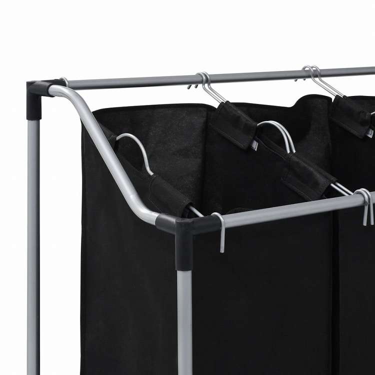 vidaXL ランドリーソーター 3バッグ付き ブラック スチール製ホーム&ガーデン 家事用品 ランドリー用品 洗濯かご