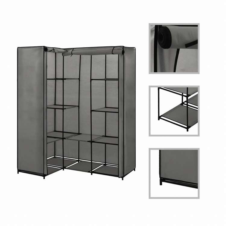 ■実用的なコーナー型洋服ラック。衣類や靴の理想的な収納方法です。 頑丈な鉄製フレーム採用し、耐久性に優れた洋服ラックです。通常の布製キャビネットと比較して、さらに安定した構造のコーナー布製キャビネット。省スペース型のワードローブは、コーナーの使い方を最適化しているため、大容量の収納スペースと吊り下げオプションを備え、バッグや靴、小物を整理して手の届く場所に置きます。 ジッパー付きの布製カバーは、汚れやほこりから衣類を守ります。