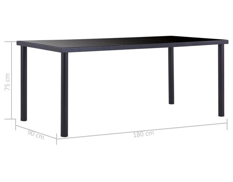 vidaXL ダイニングテーブル ブラック 180x90x75cm 強化ガラス製家具テーブルキッチン・ダイニングルームテーブル