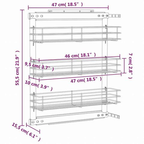 vidaXL 3段 引き出しキッチンワイヤーバスケット 47x15x55.5 cm シルバーホーム&ガーデン キッチン&ダイニング キッチンツール&調理器具 キッチン収納 調理道具ホルダー・ラック
