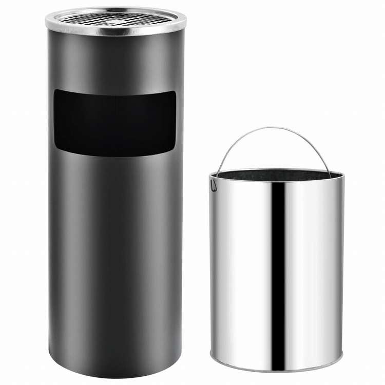 ■スチールの上品さと灰皿のデザインが特徴で、洗練されたデザインだけでなく、機能性も兼ね備えた高品質の灰皿付きごみ箱です。ごみ箱は大容量のリサイクルゴミ容器を備え、上部には灰皿も付いているので、ホテルやレストラン、家の前、オフィス、公共の場所など、屋内外で使用することができます。