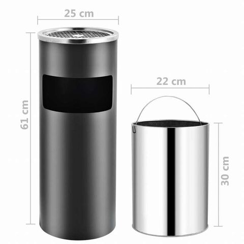 vidaXL ホテル用灰皿付ごみ箱 30 L スチール製 グレーホーム&ガーデン 家事用品 ごみ入れ ごみ箱