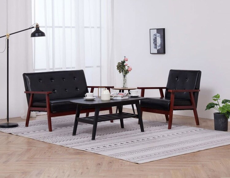 vidaXL ソファ2点セット ブラック 合成皮革 (248641+248642)家具ソファ