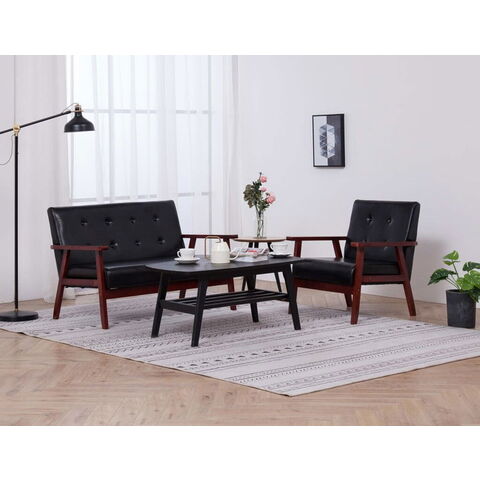 控えめなデザインが光る、上質な快適さのアームチェア。おしゃべりや読書、テレビ鑑賞、くつろぎに最適です。ソファセットは柔らかいフェイクレザーで装飾され、快適さを高めるためにフォームパッドが入っています。頑丈な無垢材フレームが、安定性と耐久性を添えています。発送パッケージには、アームチェアと2人掛けソファが含まれます。