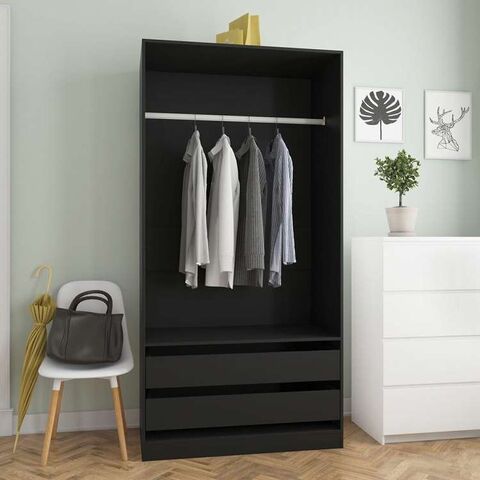 vidaXL ワードローブ ブラック 100x50x200cm エンジニアリングウッド家具 キャビネット&収納 戸棚・ワードローブ