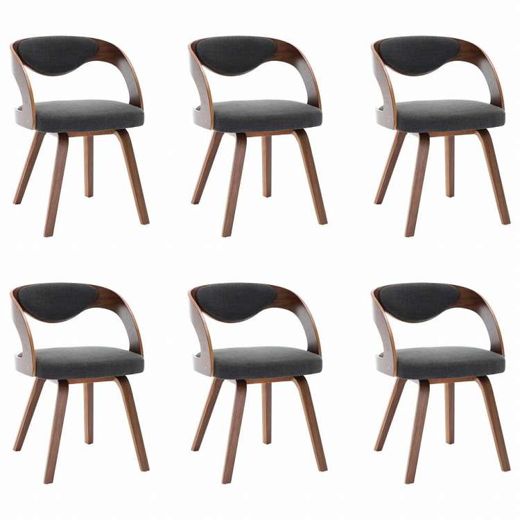 vidaXL ダイニングチェア 6点 曲木細工&布製 ダークグレー家具 チェア キッチン・ダイニングルームチェア
