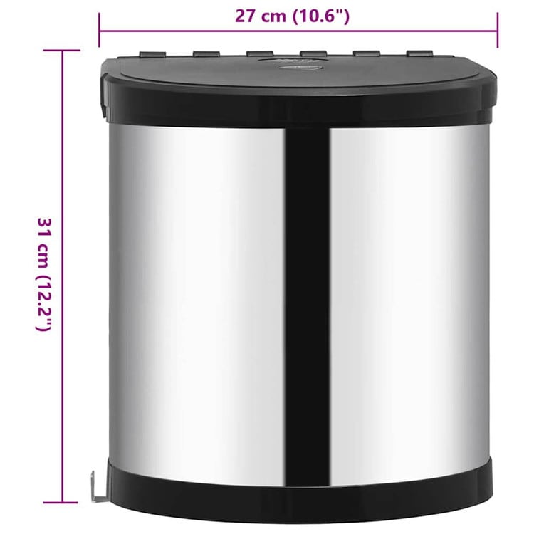 vidaXL キッチン用 一体型ごみ箱 12L ステンレススチール製ホーム&ガーデン家事用品ごみ入れごみ箱