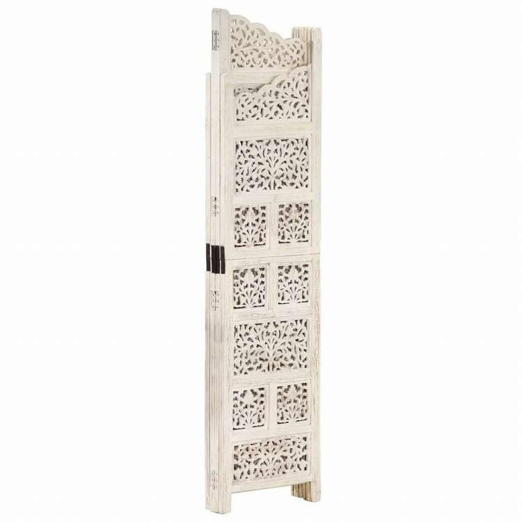 vidaXL 手彫り間仕切り 4枚パネル ホワイト 160x165cm マンゴー無垢材家具 間仕切り