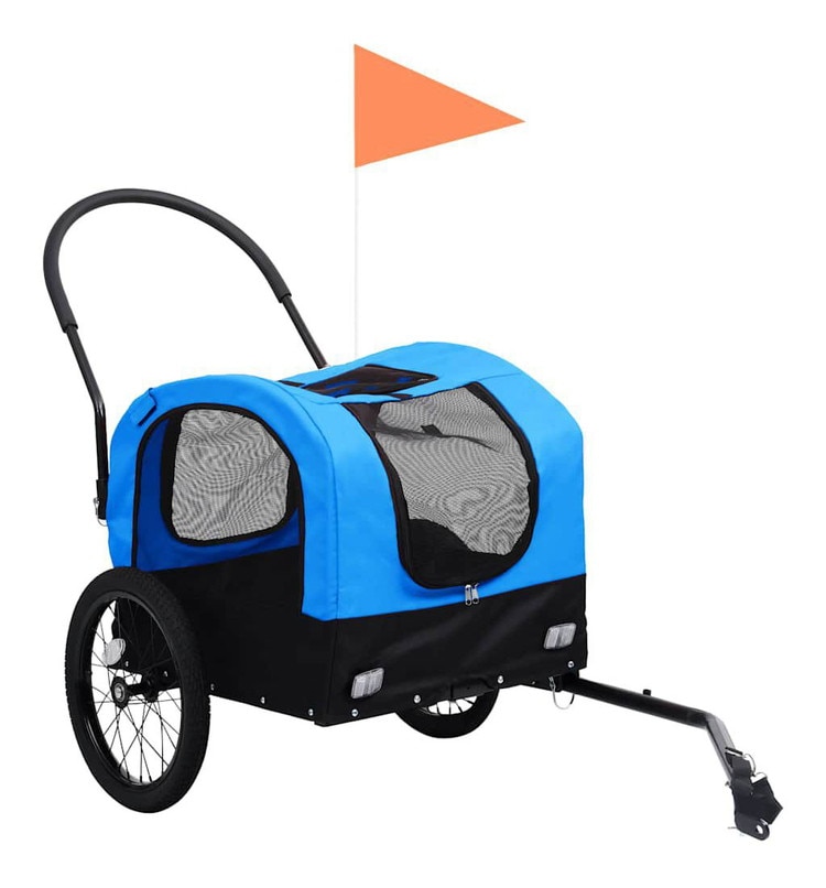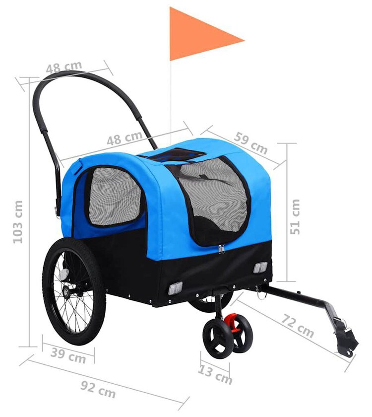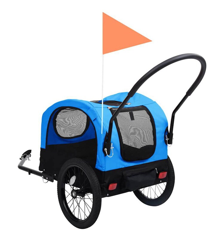 vidaXL 2-in-1 ペット用自転車トレーラー&ジョギングベビーカー ブルー&ブラックAnimals & Pet Suppliesペット用品ペットカート