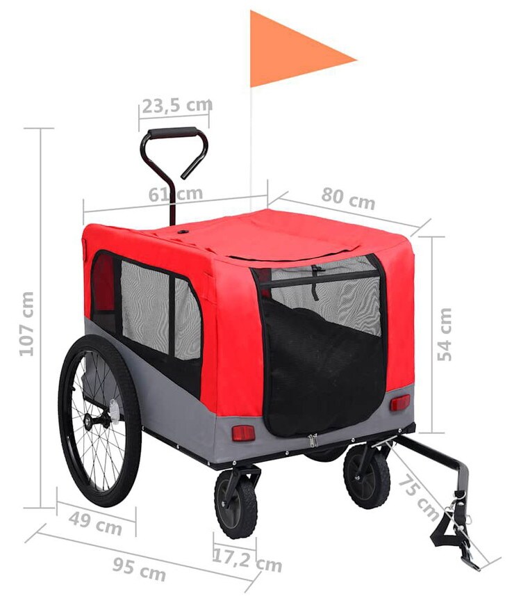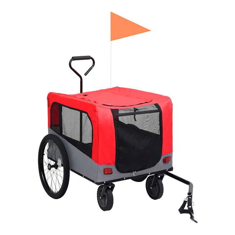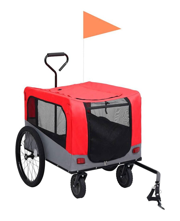 vidaXL 2-in-1 ペット用自転車トレーラー&ジョギングベビーカー レッド&グレー動物&ペット用品ペット用品ペットカート