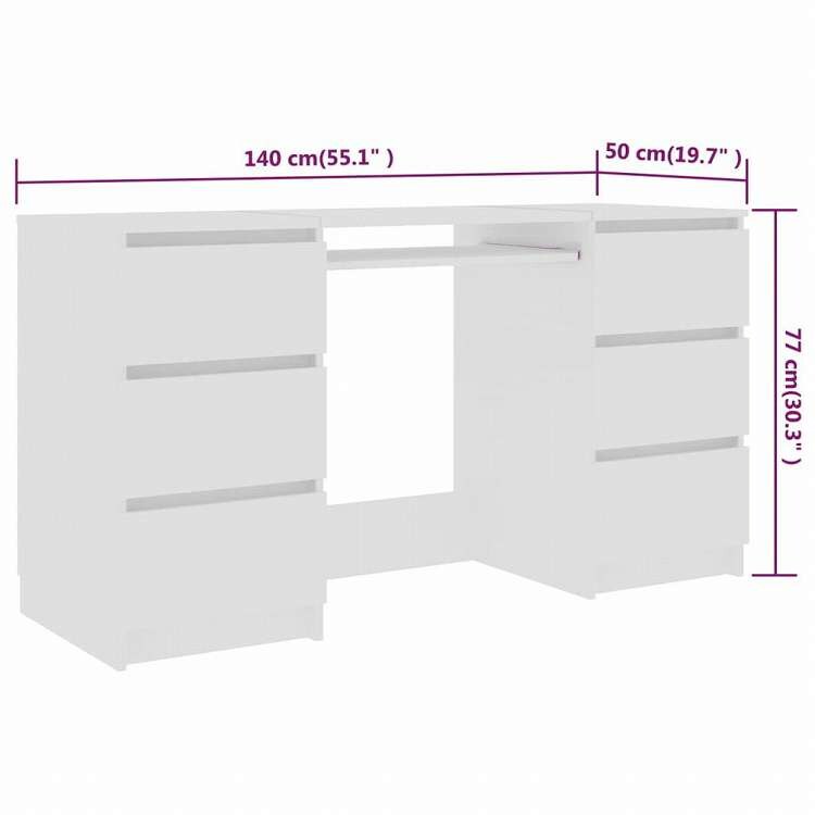 vidaXL ライティングデスク ホワイト140x50x77cm エンジニアリングウッド家具 オフィス家具 デスク