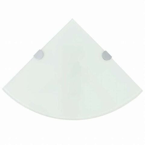 vidaXL コーナーシェルフ 2点 クロームサポート付き ガラス ホワイト 25x25 cm家具 棚 壁面収納棚・壁面ラック