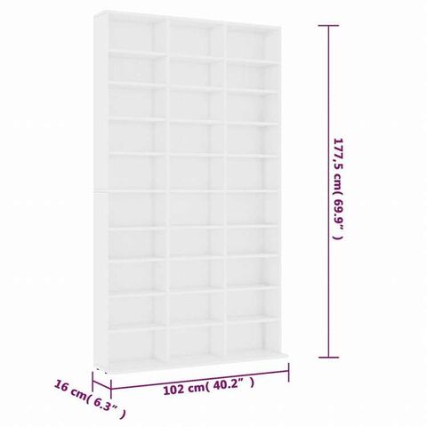 vidaXL CDキャビネット ホワイト102x16x177.5 cm エンジニアリングウッド家具 キャビネット&収納 メディア収納・ラック