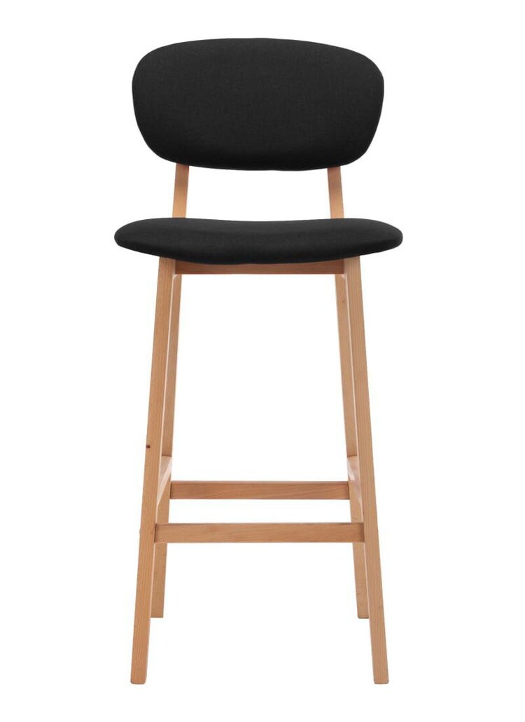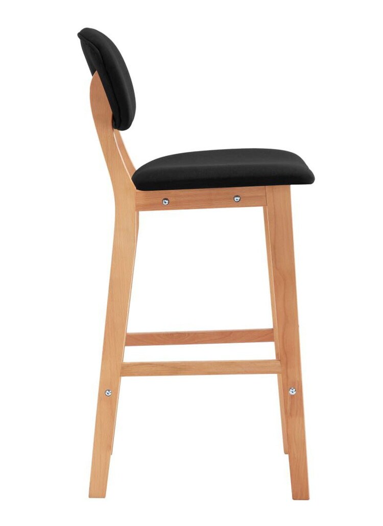 シンプルなモダンスタイルのバーチェア2点セット。ご自宅、オフィス、バー、カフェなど、いろんなシチュエーションにぴったりです。柔らかい生地で布張りされており、シートと背もたれは快適な座り心地。脚は無垢のブナ材でできており、安定性抜群で耐久性に優れた椅子になっています。一体型のフットレストは、椅子の快適さを高めています。