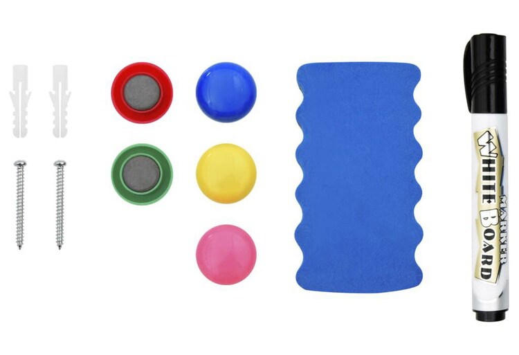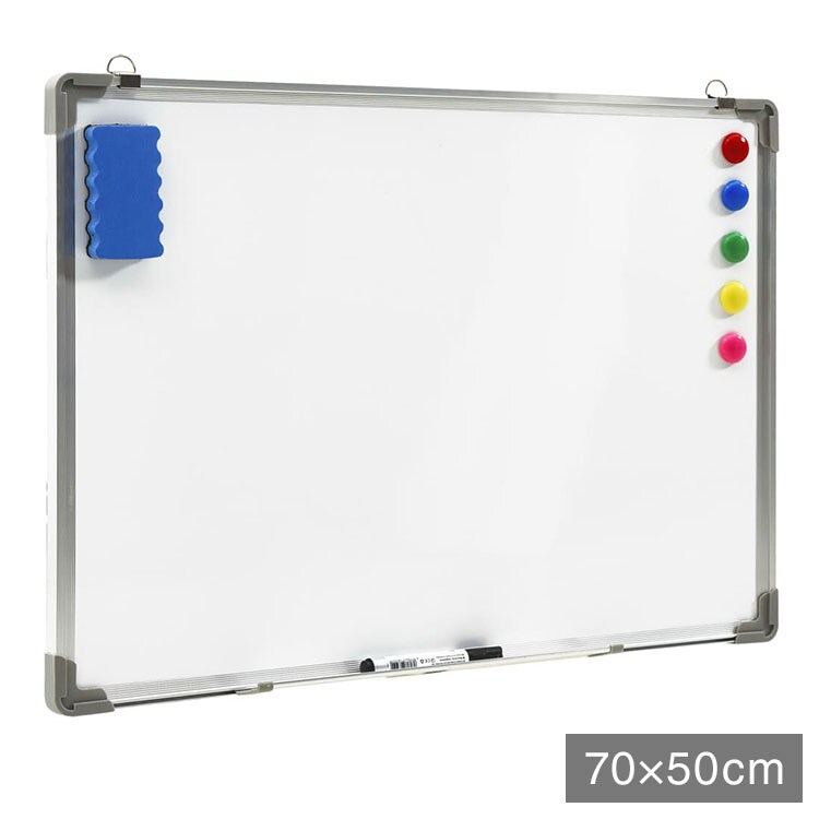 この壁掛け用マグネットホワイトボードで、お家に中心的な空間をつくりましょう。メモを書いたり、落書きしたり、写真を飾ったりするのに、理想的なオプションです。ホワイトボードの表面は、ラッカーコーティングされたスチール製です。付属のマーカーとホワイトボード消しで、書きやすく、お手入れも簡単です。アルミ製フレームとコーナープロテクター付きだから、丈夫で耐久性に優れています。付属のマグネットで吊るすことができます。フックと釘も本製品に含まれているから、壁への取り付け作業は簡単楽々。