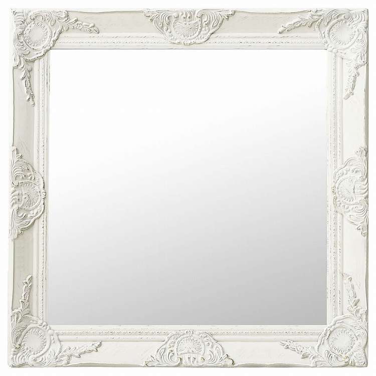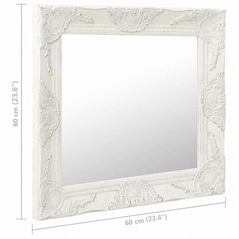 vidaXL ウォールミラー バロック調 60x60cm ホワイトホーム&ガーデン デコレーション 鏡