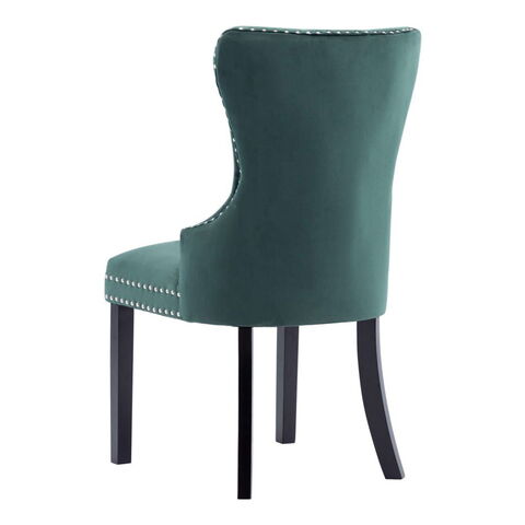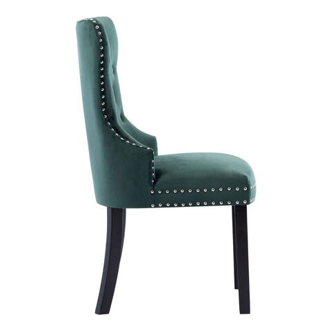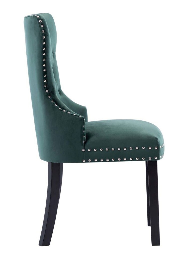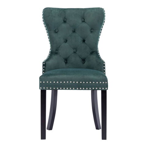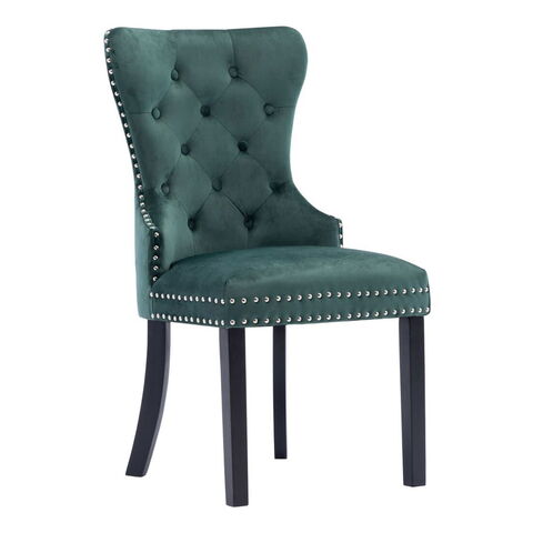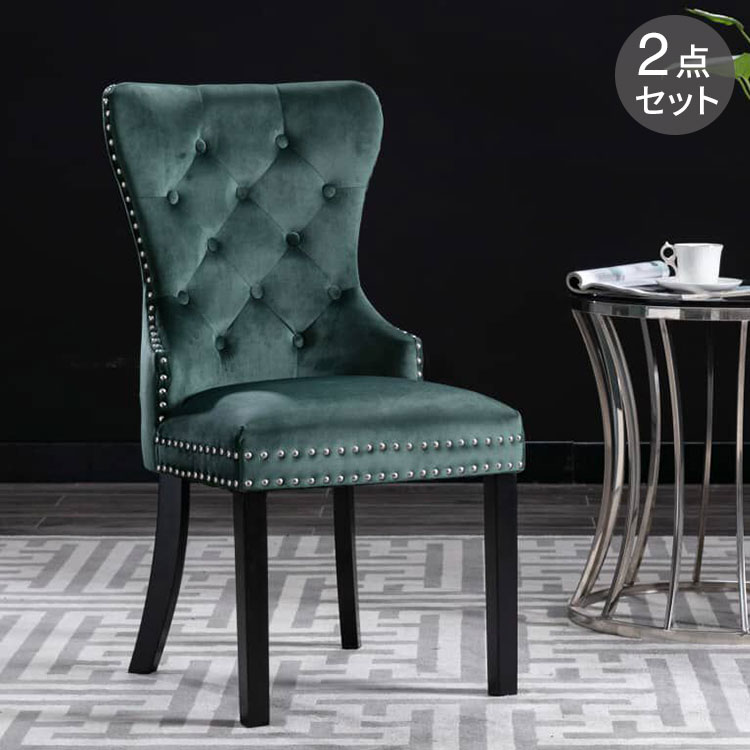 このダイニングチェアで、ダイニングエリアにクラシックテイストのインテリア家具を取り入れましょう。手触りがソフトなベルベット生地で布張りしており、このディナーチェアは、お食事、読書、くつろぐのに快適な環境として理想的です。背もたれの装飾的なボタン、エッジの金属製リベットは、椅子の古典的な美しさを強調しています。頑丈なラバーウッド製の脚がしっかりとダイニングシートを支えており、安定感に優れたチェアに仕上がっています。
