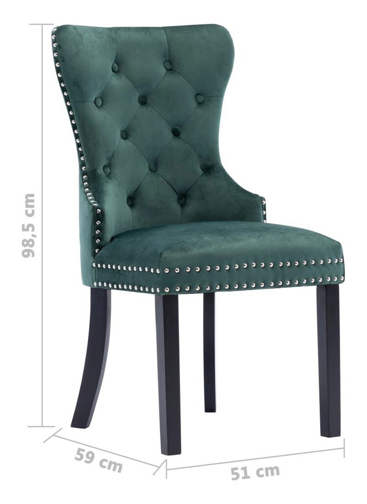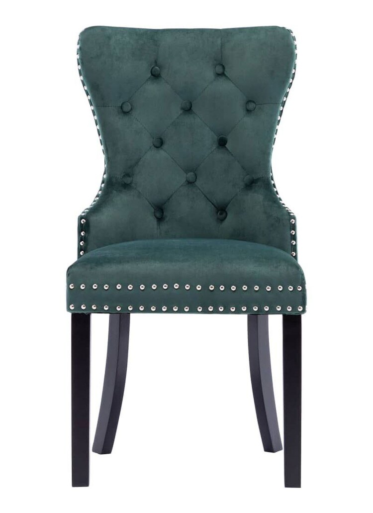 vidaXL ダイニングチェア 2点 ダークグリーン ベルベット製 家具 チェア キッチン ダイニングルームチェア