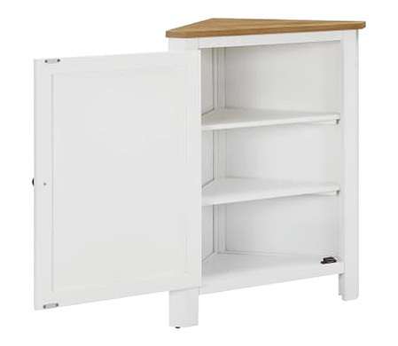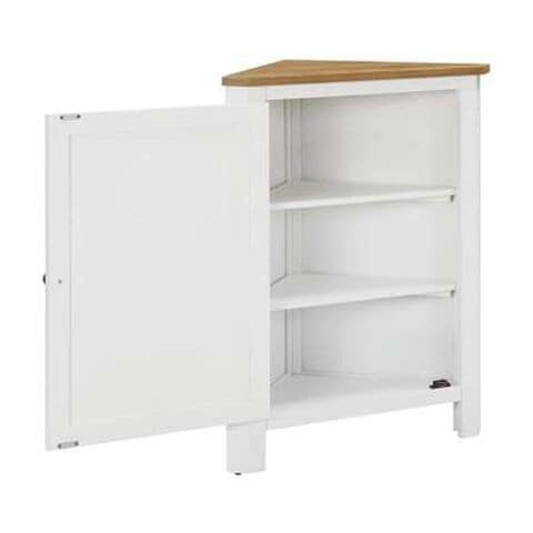 ■この木製のコーナーキャビネットで、見過ごされがちな空間をパッと明るく彩りましょう。 このキャビネットのトップ面は、オーク無垢材とオーク調ベニヤ付きのMDFでできており、ボディは無垢のアカシアウッド製です。むき出しの木目は、どの収納キャビネットもちょっぴり独特に仕上げています。加えて、シェルフ3点には、アイテムを整理するスペースが十分あります。 重要事項:自然素材であるため、色と木目は商品毎に異なります。ユニークなキャビネットです。