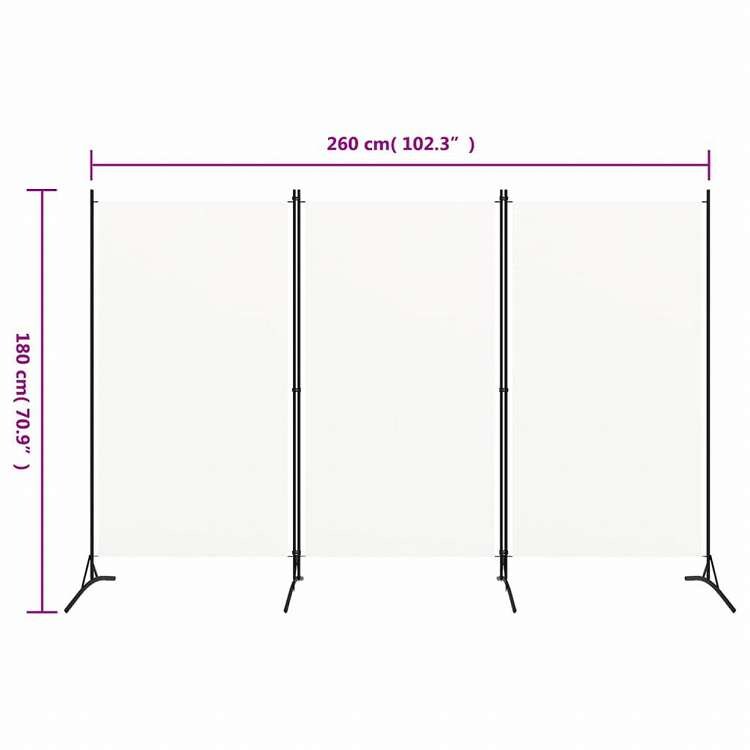 vidaXL 間仕切り 3枚パネル り ホワイト 260x180cm 布製家具 間仕切り
