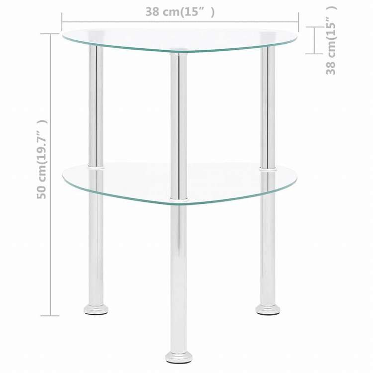 vidaXL 2段 サイドテーブル 透明 38x38x50cm 強化ガラス製家具 テーブル アクセントテーブル エンドテーブル