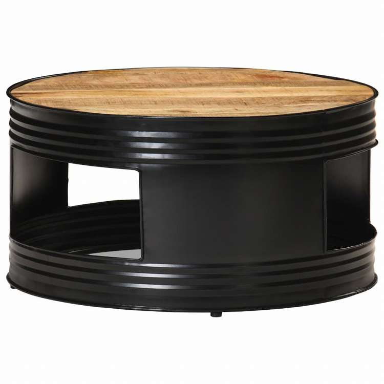 vidaXL コーヒーテーブル ブラック 68x68x36cm マンゴー無垢材 (粗目)家具 テーブル アクセントテーブル コーヒーテーブル
