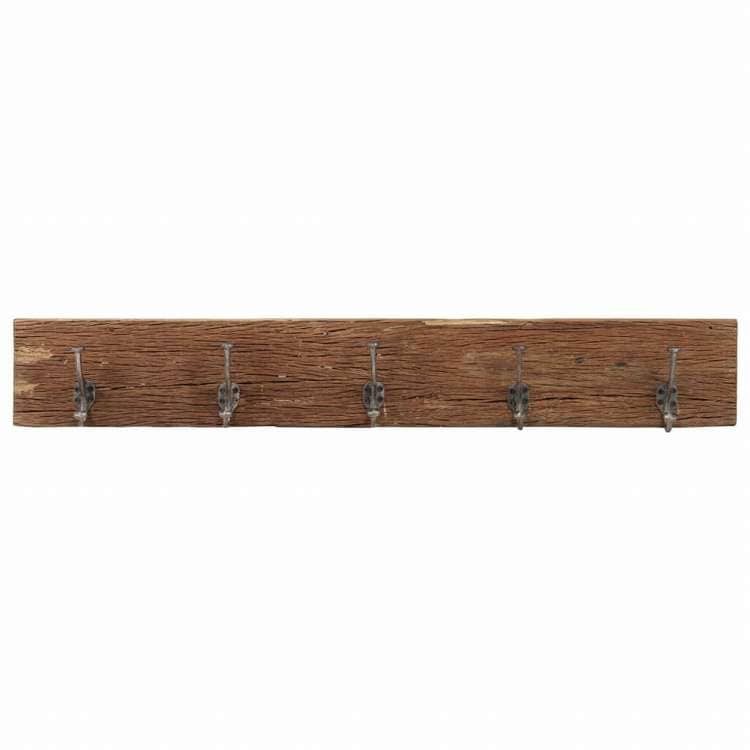 vidaXL 玄関・ウォールハンガー フック5個付 100x2.5x15 cm 再生無垢材ホーム&ガーデン デコレーション コート・帽子用ラック