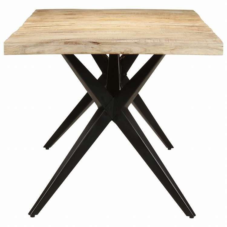 ■ご家族や友達との毎日のディナーを特別に演出する、この木製ダイニングテーブル。 このキッチンテーブルは、耐荷性、耐用性、安定性と耐久性に優れた熱帯広葉樹である、粗いマンゴー無垢材でできています。クロス型のテーブル脚には粉体塗装加工を施したスチールを使用しているため、頑丈さが高いのも特長。食事、飲み物や装飾品を木製のテーブルトップに置くことができます。 重要事項:自然素材を使用しているため、色と木目は商品毎に異なり、1点ものとなります。ランダム発送のため、商品の独自性が保たれています。