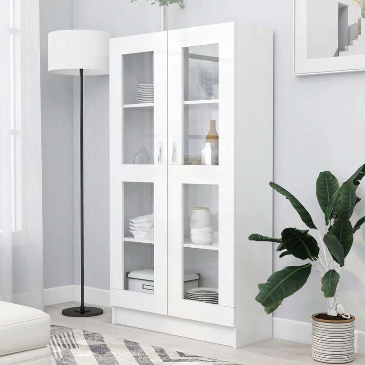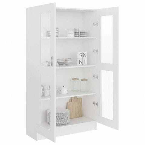 vidaXL ガラスキャビネット ホワイト 82.5x30.5x150cm エンジニアリングウッド家具 棚 本棚・オープンラック