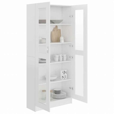 vidaXL ガラスキャビネット ホワイト 82.5x30.5x185.5cm エンジニアリングウッド家具 棚 本棚・オープンラック