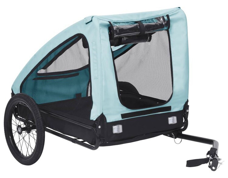 愛犬や愛猫と一緒にお出かけできる、ペット用自転車トレーラーです。頑丈なスチールフレームとオックスフォード生地で作られたペット用トレーラーです。耐久性抜群で、お手入れも簡単。また、両端のメッシュ窓は、空気を十分に循環でき、かつ前面と背面からの出入りを可能にした便利な双方向型出入り口になっています。ホイールと後方のリフレクターは、あなたとあなたのペットが他の人から認識できるようにしています。ペットバイクキャリアには、自転車に簡単に取り付けることができるクイックリリースヒッチが付いています。また、テーブルは折りたたみでき、使用しないときはスペースを節約できます。