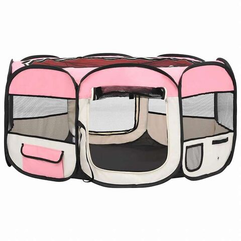 vidaXL 折りたたみ式 犬用プレイサークル キャリーバッグ付き ピンク 145x145x61cm動物&ペット用品 ペット用品 犬用品 犬小屋・ドッグラン