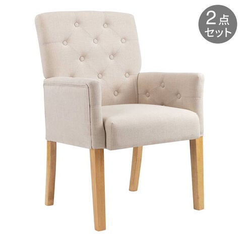 vidaXL ダイニングチェア アームレスト付き 2点セット ベージュ 布張り家具チェアキッチン・ダイニングルームチェア