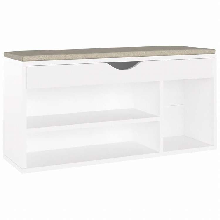 vidaXL シューズベンチ クッション付き ホワイト 104x30x49 cm エンジニアリングウッドホーム&ガーデン 家事用品 収納&オーガナイザー 衣類・ワードローブ収納 シューズラック・整理収納
