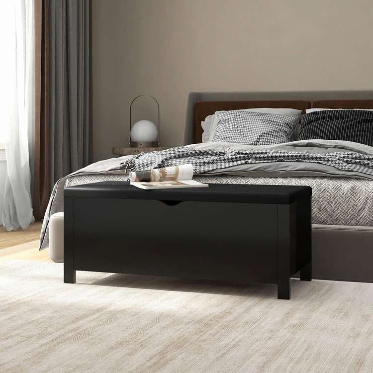 vidaXL シューズボックス クッション付き ブラック 104x40x45cm エンジニアリングウッド家具 キャビネット&収納 収納チェスト