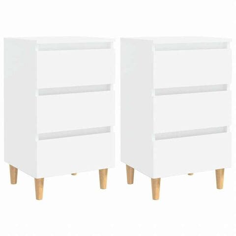 vidaXL 805888 vidaXL ベッドキャビネット 無垢材脚付き 2点 ホワイト 40x35x69 cm家具 テーブル ベッドサイドテーブル
