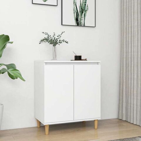 vidaXL サイドボード 無垢材脚付き ホワイト 60x35x70 cm エンジニアリングウッド家具 キャビネット&収納 サイドボード