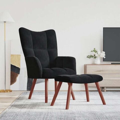 vidaXL リラックスチェア スツール付 ブラック ベルベット家具 チェア アームチェア・リクライニングチェア・スリーピングチェア