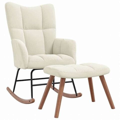 vidaXL ロッキングチェア スツール付 クリームホワイト ベルベット家具 チェア ロッキングチェア