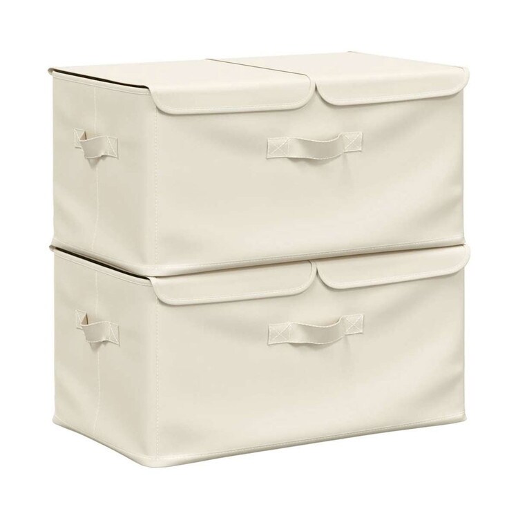 vidaXL 収納ボックス 2点 布製 50x30x25cm クリームホーム&ガーデン家事用品収納&オーガナイザー家庭用品収納ボックス