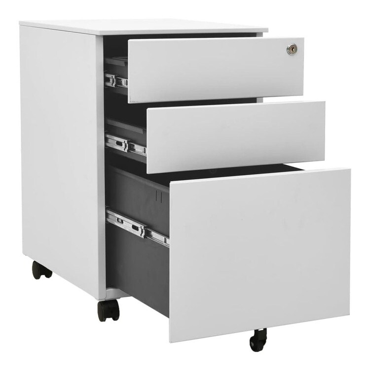 オフィスキャビネットは、一般的なファイリングキャビネットデザインで、ファイル保管にぴったりです。プレミアムスチール製のオフィスキャビネットです。耐久性があり、お手入れも簡単。組み立ても簡単にできます。引き出し2点に鍵が付いた設計のファイルキャビネットです。ファイルを異なるカテゴリーにすっきり整頓でき、安全に保管することができます。各引き出しには、取り外し可能な仕切り板がついているため、レターサイズ、リーガルサイズそしてA4サイズの書類に合わせて自由に調整できます。モバイルキャビネットにはペントレイがついており、机の上をすっきり片づけることができます。各引き出しに3段引きスライドレールを備えており、開け閉めがスムーズにできます。引き出しにかかる負荷が大きくなっても、奥まで完全にスライドさせることができます。このファイルキャビネットは机の下に入ります。一般的なキャビネットデザインなので、どんなオフィスにも適しています。
