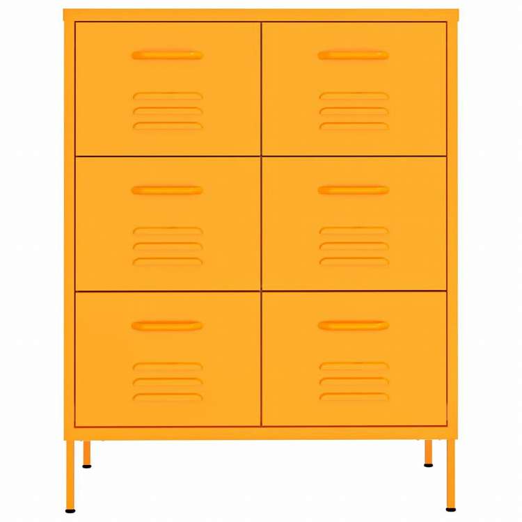 vidaXL 引き出しキャビネット マスタードイエロー 80x35x101.5 cm スチール家具 キャビネット&収納 収納キャビネット・ロッカー