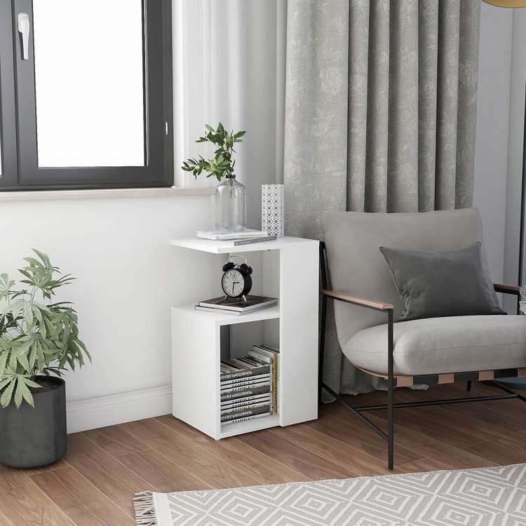vidaXL サイドテーブル ホワイト 36x30x56cm エンジニアリングウッド家具 テーブル アクセントテーブル エンドテーブル