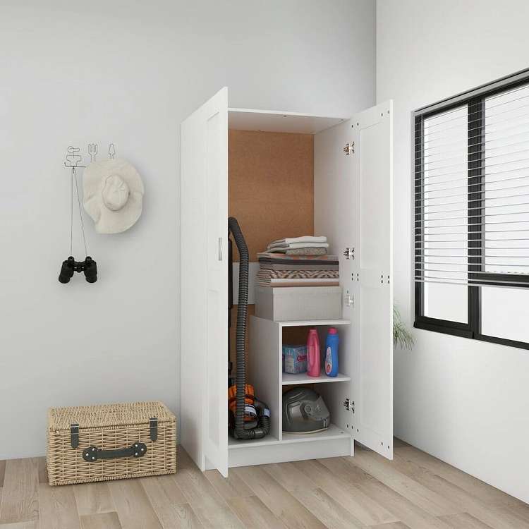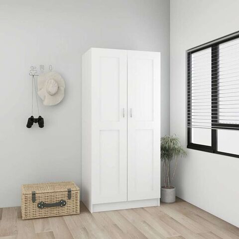 vidaXL 洋服ダンス ホワイト 82.5x51.5x180 cm エンジニアリングウッド家具 キャビネット&収納 戸棚・ワードローブ